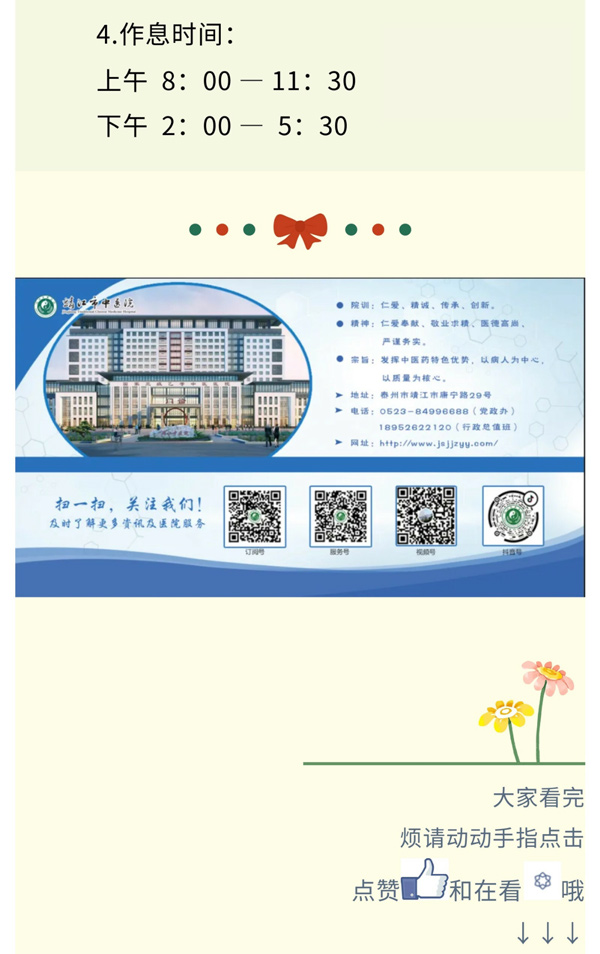 上一篇: 靖江市中医院11月份门诊排班出炉,请查收!下一篇:靖江市中医院2025年清明节假期门急诊安排