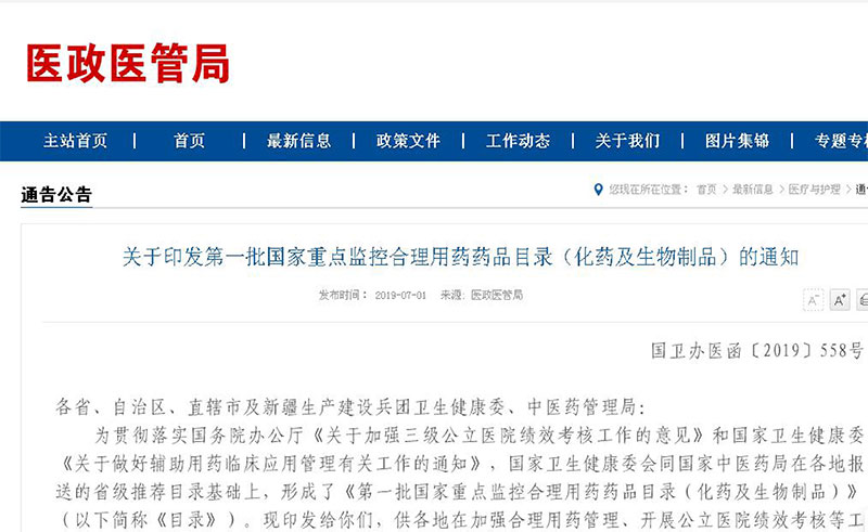 国家重点监控药物文件及我院符合监控合理用药药品目录标准